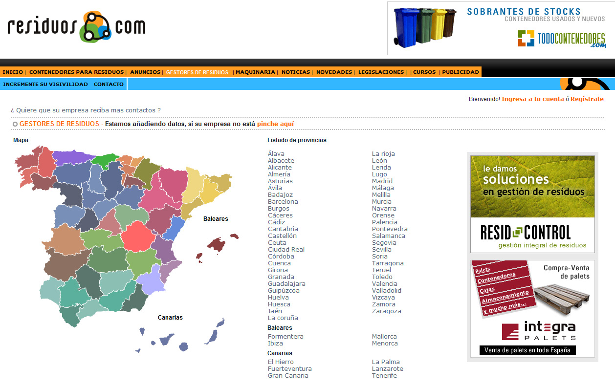 Residuos.com, es un portal diferente está pensado para cubrir todas las necesidades de sus usuarios, pueden buscar una empresa que le retire sus residuos, pueden comprar contenedores para residuos, buscar maquinaria, consultar noticias, contratar cursos, etc